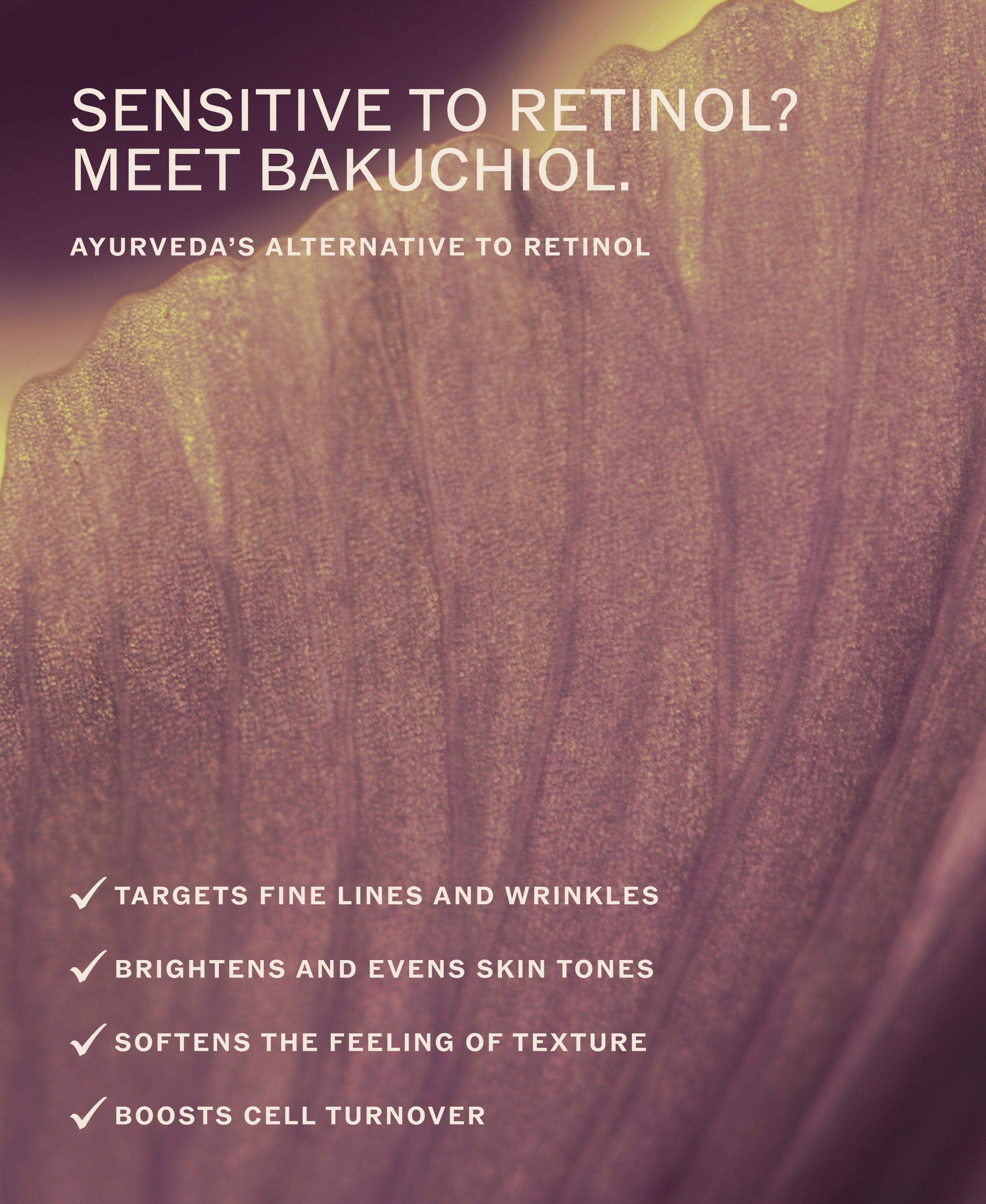 A gentle yet powerful plant extract long used in Ayurvedic tradition as a natural alternative to retinol.